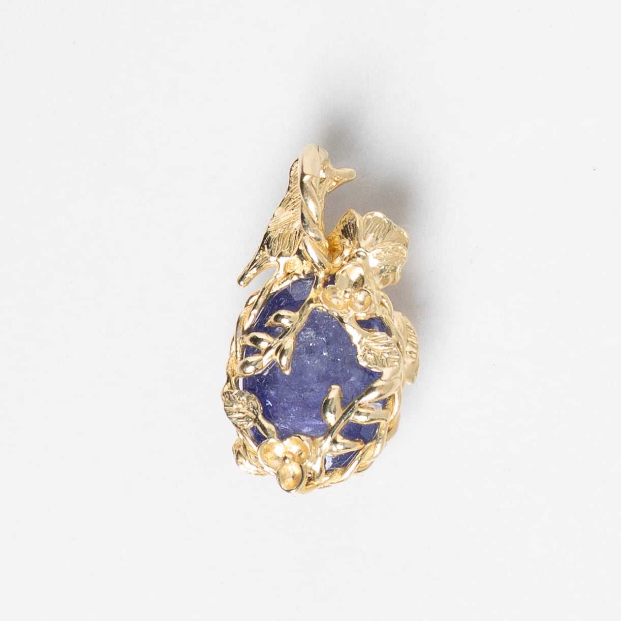 TOPに鳥をあしらうデザインでタンザナイトを制作したのはこちらが初めて。夜の森の守護神のような印象を与えてくれます。