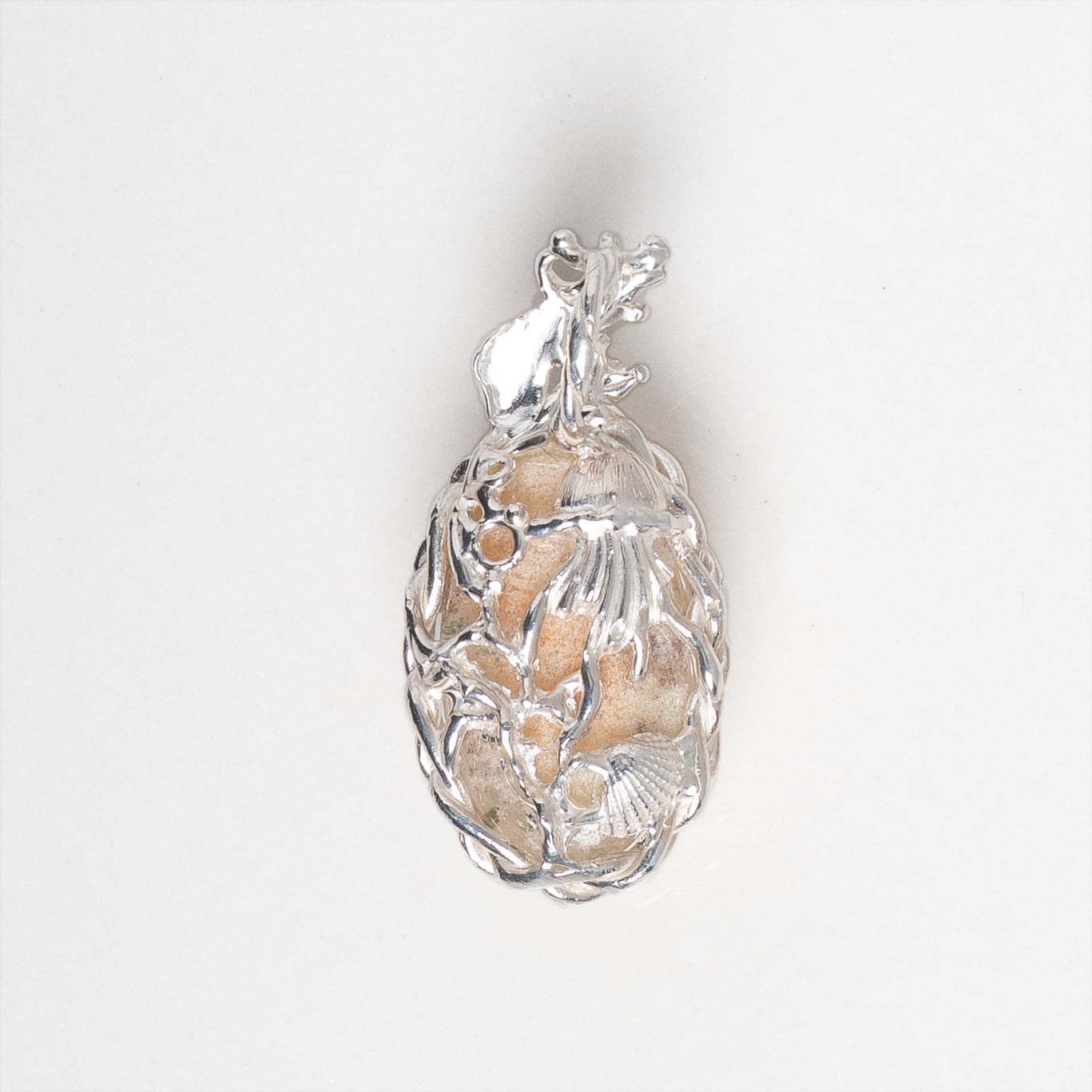 美しい南国の珊瑚礁を思わせていくれる、白い砂岩に透明感と高さのあるクォーツが織りなす世界観はまさに唯一無二。海モチーフの作品は近年大変定評があり、珊瑚や貝などを合わせて爽やかな印象で仕上げています。
