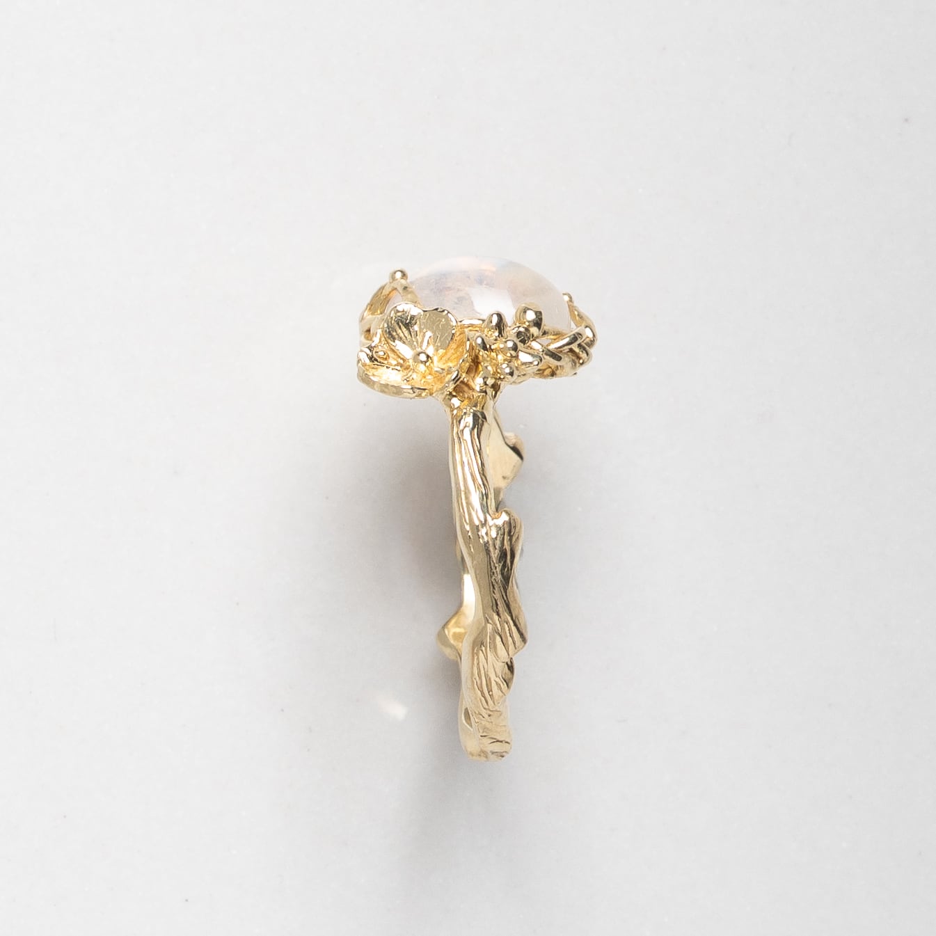 リング腕は360度楽しんでいただける枝モチーフのデザインで仕上げているため手のひらを見ていただくと枝モチーフがチラリと見えるのがチャームポイントです。
