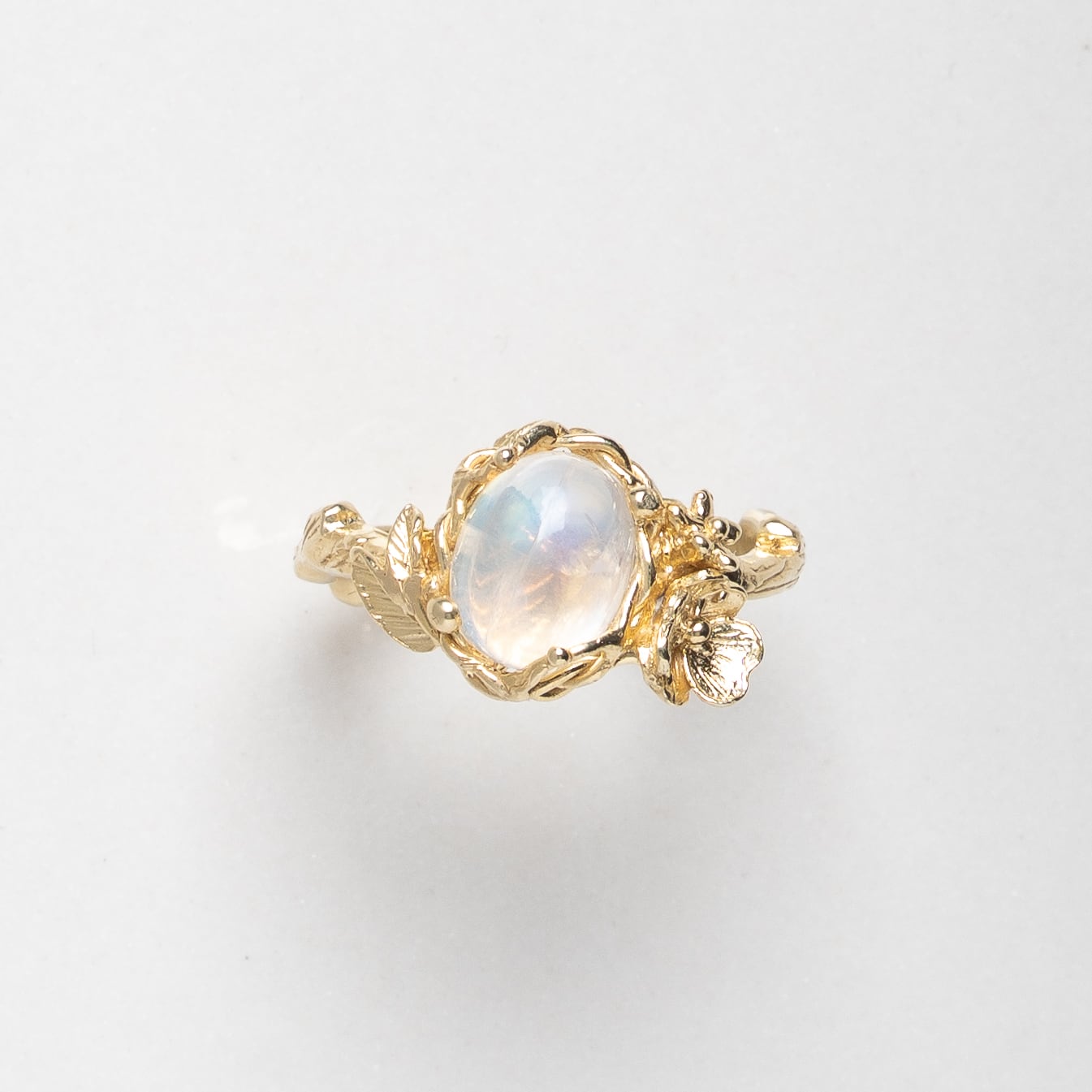ブルームーンストーンリングの中では大粒部類に入るピースでリングを仕立てました。